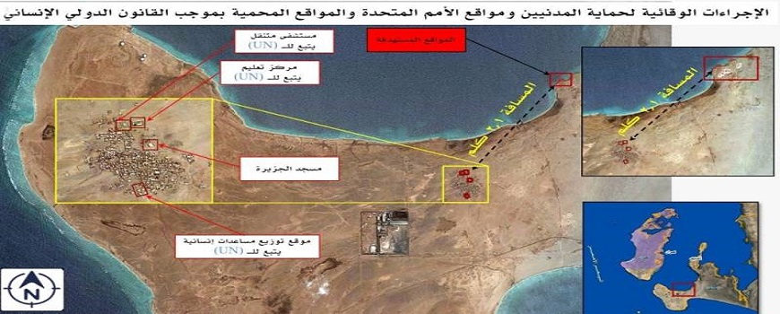 وقال إن الأهداف المدمرة شملت 6 مواقع لتجميع وتفخيخ واطلاق الزوارق المفخخة والمسيّرة عن بعد وكذلك الألغام البحرية، حيث يتم استخدام هذه المواقع للإعداد لتنفيذ الأعمال العدائية والعمليات الارهابية والتي تهدد خطوط الملاحة البحرية والتجارة العالمية بمضيق باب المندب وجنوب البحر الأحمر، مبيناً أن عملية الاستهداف تتوافق مع القانون الدولي الإنساني وقواعده العرفية وتم اتخاذ الإجراءات الوقائية لحماية المدنيين ومواقع الأمم المتحدة والمنظمات الدولية الغير حكومية والتي تبعد مسافة (2.1) كلم من المواقع المستهدفة.