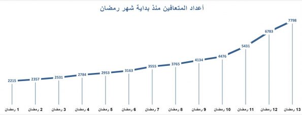 وفيما يلي توضيح لأعداد المتعافين من الإصابة بالفيروس خلال الشهر الكريم وحتى الرقم المعلن اليوم: