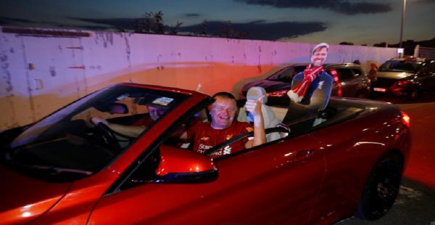 وخرجت جماهير ليفربول، إلى شوارع المدينة للاحتفال بتتويج فريقها، وحملت الجماهير أعلام النادي الحمراء، وأطلقت الألعاب النارية في محيط ملعب آنفيلد، معقل النادي، حيث بدأت الليلة الاحتفالات بتتويجه باللقب الغائب، متحديةُ فيروس كورونا.