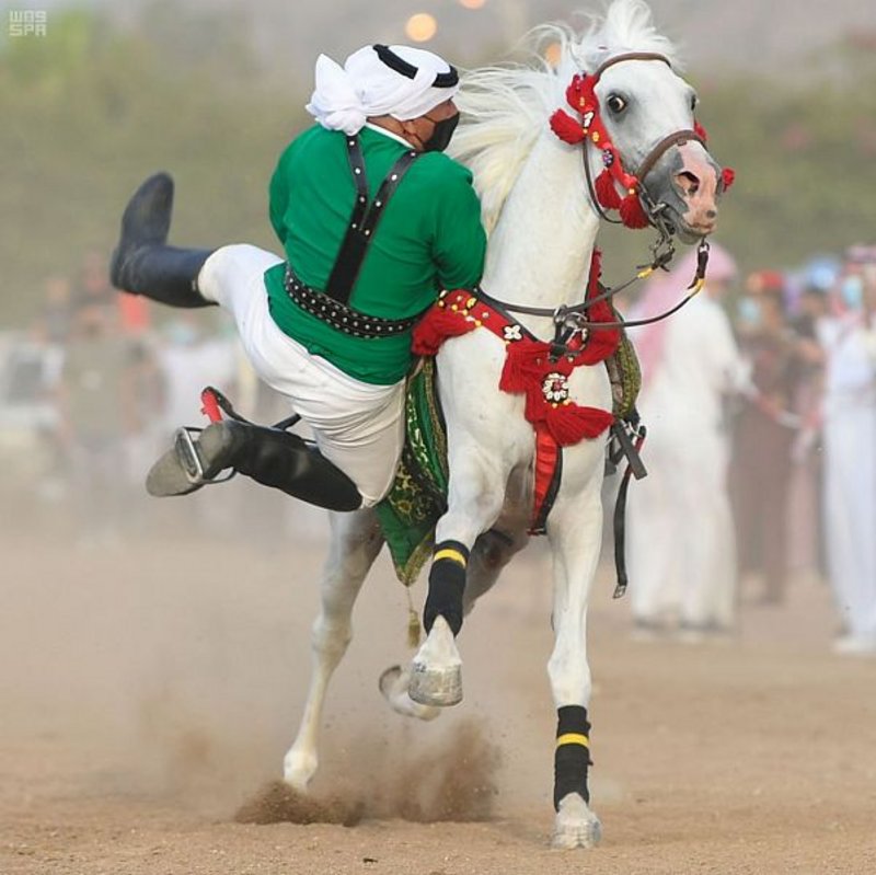 وتضمنت العروض مهارات للفرسان بالخيل العربية الأصيلة بمناسبة عودة الحياة الطبيعية تحت شعار “نعود بحذر”؛ إذ قدَّم 20 فارسًا مهاراتهم عبر تشكيلات مختلفة، أبرزت أصالة الخيل العربية، والاعتزاز بالتراث، وكانت عامل جذب للجمهور، وتشجيعًا للسياحة.