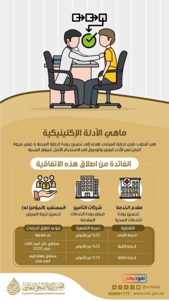 أطلق مجلس الضمان الصحي التعاوني الحزمة الأولى من الأدلة الإكلينيكية التي تعد باكورة مخرجات إتفاقية التعاون بين المجلس والجمعية السعودية لطب الأسرة والمجتمع وتغطي 35% من الأمراض ومن أهمها أمراض السكري و الضغط والكوليسترول .