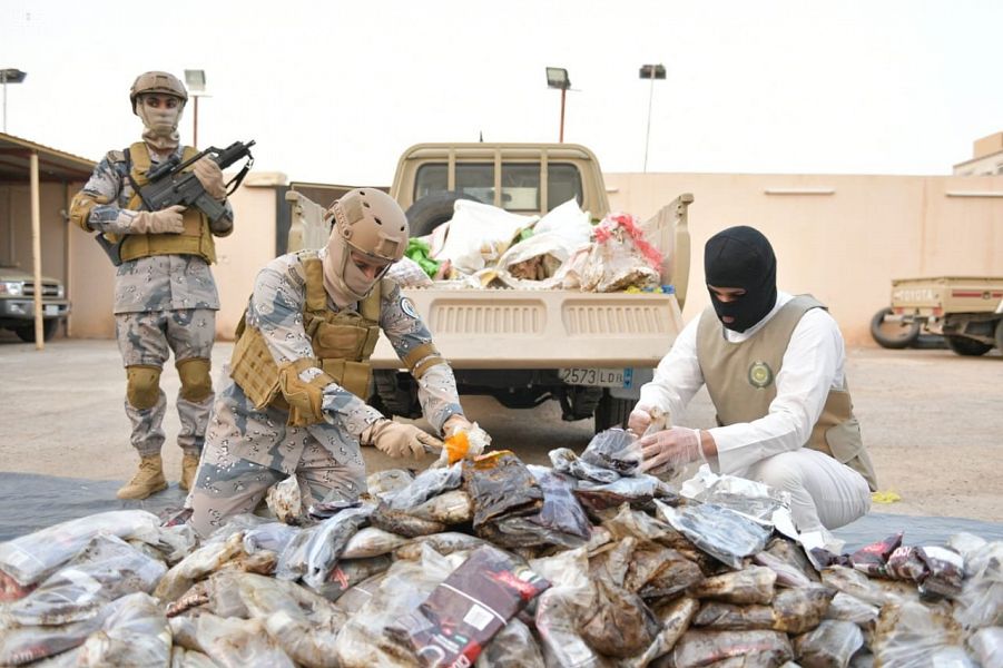 صرّح المتحدث الرسمي لحرس الحدود، المقدم مسفر بن غنّام القريني، بأنه وفي إطار المتابعة الأمنية المستمرة للنشاطات الإجرامية التي تستهدف المملكة بالمخدرات، فقد أسفرت تحريات رجال حرس الحدود عن كشف مخطط لتهريب كمية كبيرة من الحشيش المخدر إلى المملكة عبر الحدود الجنوبية ، حيث جرى على الفور اتخاذ الإجراءات اللازمة وفق خطة أمنية مشتركة مع المديرية العامة لمكافحة المخدرات، وبتوفيق من الله، جرى إحباط هذا المخطط الإجرامي وضبط المواد المخدرة التي بلغت (948) كيلو جراماً من مادة الحشيش المخدر، والقبض على مستقبلها، وهو مواطن من أرباب السوابق في منطقة الرياض.