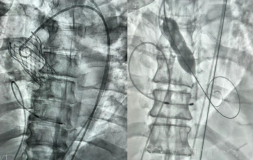 وأضاف د. الحجيلي إن الفريق الطبي الذي ضم أيضاً، د. حسن وداعة استشاري أمراض القلب والقسطرة، وضع الخطة العلاجية اللازمة التي ارتكزت على توسعة الشريان التاجي ومن ثم تغيير الصمام الابهر عن طريق القسطرة التداخلية.