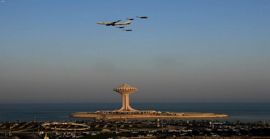 عروض جوية بالمنطقة الشرقية احتفالاً باليوم الوطني الـ 90 1442-02-07 هـ(واس)