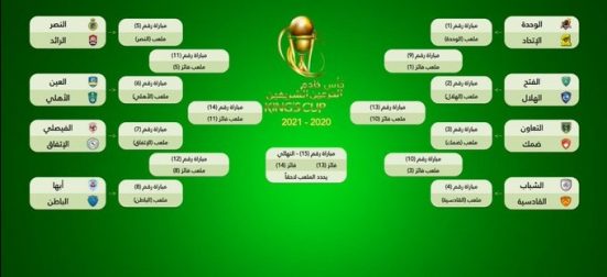 وجرت القرعة بين أندية دوري كأس الأمير محمد بن سلمان للمحترفين “16 ناديًا” وهي “الهلال ، النصر، الأهلي، الوحدة، الفيصلي، الرائد، الشباب، الاتفاق، أبها، الاتحاد، التعاون، ضمك، الفتح، الباطن، القادسية، والعين”.