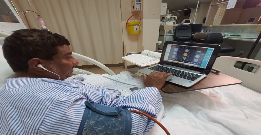إبراهيم السبت.. معلم يشرح دروسه خلال غسله للكلى في الأحساء