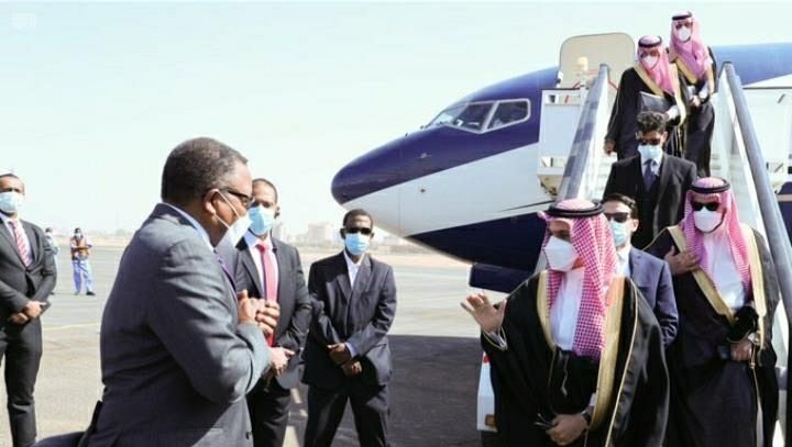 وكان في استقبال الأمير فيصل بن فرحان، بمطار الخرطوم الدولي، الوزير المكلّف عمر قمر الدين، وسفير خادم الحرمين الشريفين لدى السودان علي بن حسن جعفر.