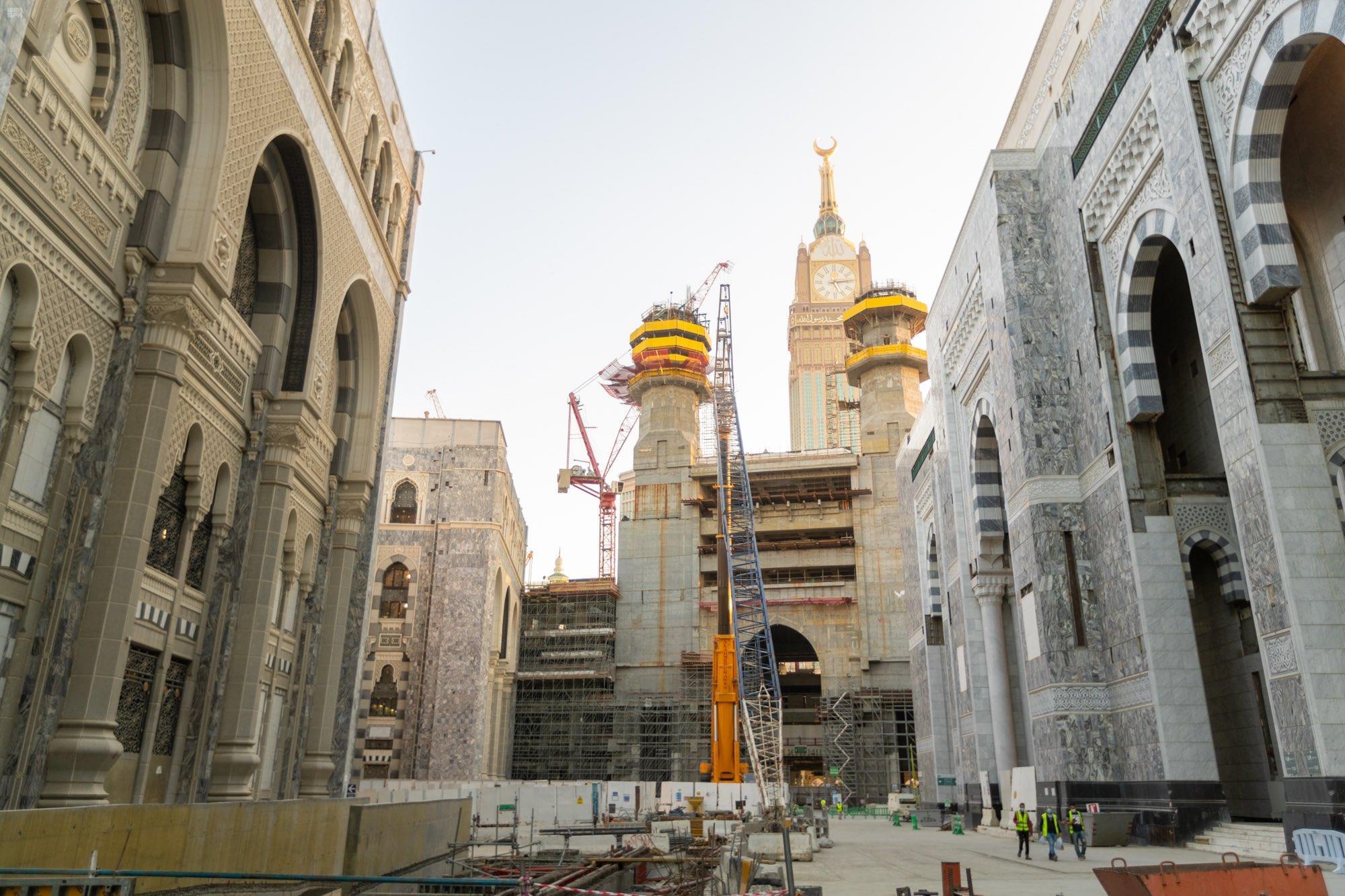 إنجاز 45 % من أعمال الإنشاء بمنارتي باب الملك عبدالعزيز بالمسجد الحرام (واس)