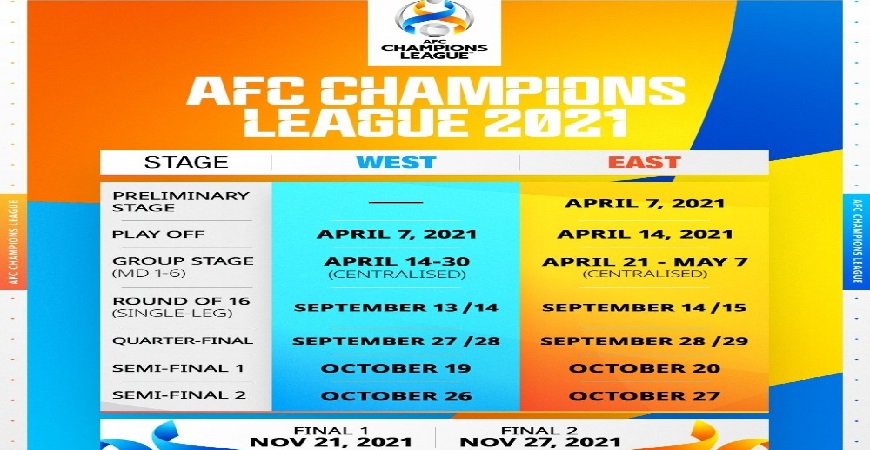 ومن خلال الدعم المتواصل من الاتحادات الوطنية الأعضاء والأندية المشاركة، قرر الاتحاد الآسيوي لكرة القدم إقامة دور المجموعات لمنطقة غرب آسيا خلال الفترة من 14-30 أبريل، على أن تجري مباريات الشرق في الفترة من 21 أبريل ولغاية 7 مايو 2021.