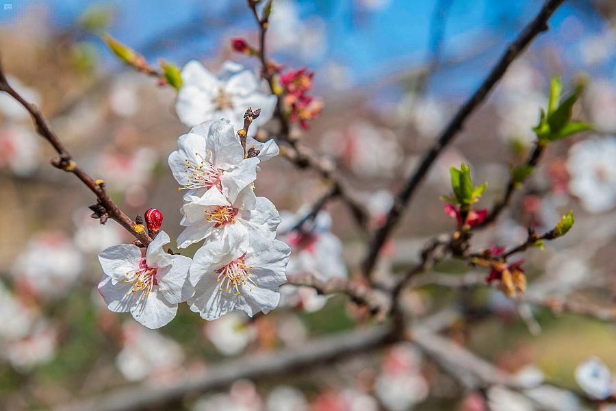 أشجار المشمش الطائفي يكسوها البياض في مرحلة ” الفضيض ” (واس)