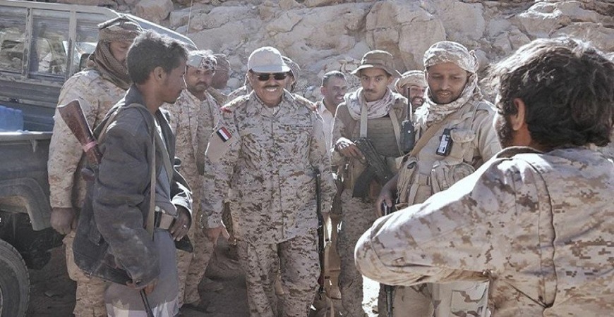 الفريق محسن صالح مع قوات من الجيش اليمني «أرشيفية»