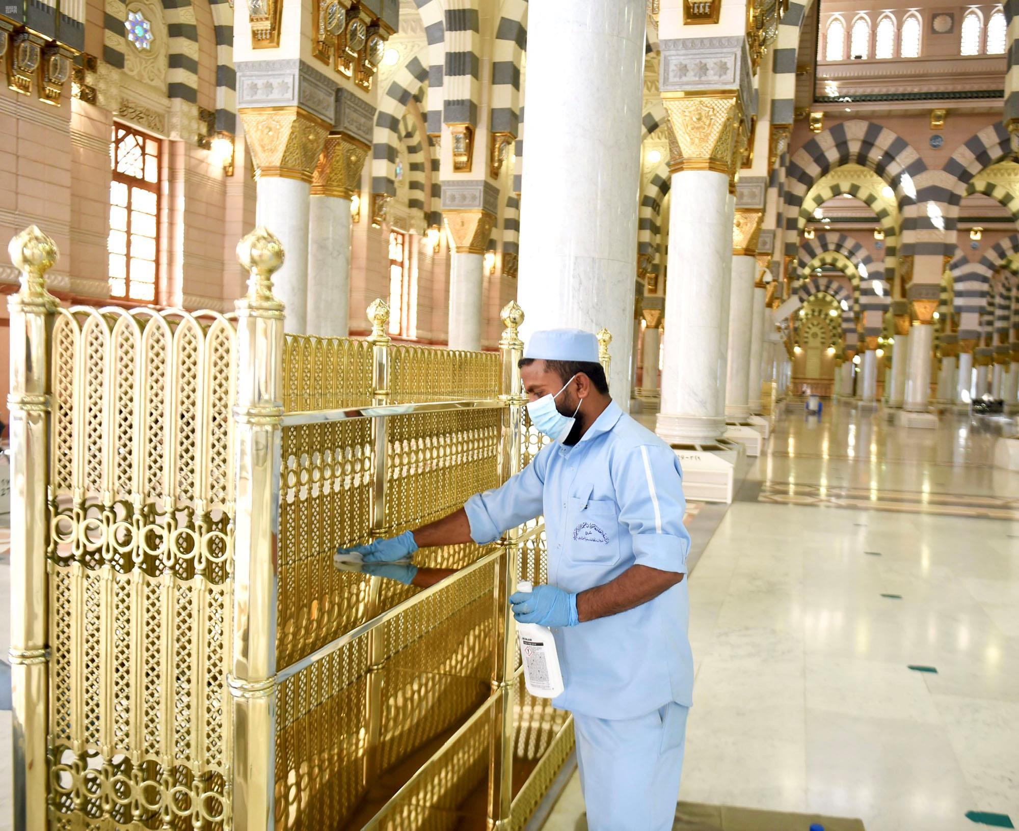 أعمال التعقيم والتنظيف في أرجاء المسجد النبوي (واس)