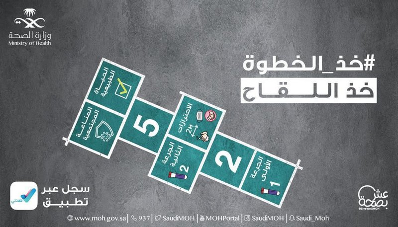 وتتضمن الحملة العديد من المنتجات التوعوية التي تؤكد على ضرورة التقيد بالإجراءات الاحترازية والتسجيل عبر تطبيق “صحتي” لأخذ اللقاح عبر مراكز اللقاح التي هيأتها وزارة الصحة في مختلف مناطق المملكة، كما تركز الحملة على التعريف بالدور الفاعل للقاح في حماية الشخص من الإصابة بفيروس كورونا.
