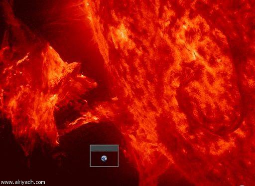 كشفت الجمعية الفلكية فى جدة أن المراصد الفضائية سجلت يوم أمس حدوث انفجار ” مرعب ” انطلق فوق الشمس من الحافة الجنوبية الشرقية في الجانب غير المقابل للأرض .