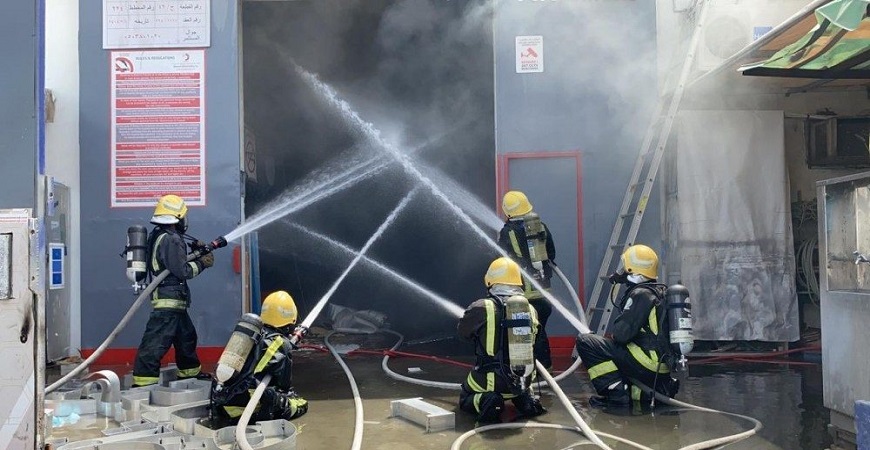 مدني الدمام يخمد حريقًا اندلع في عدد من ورش صيانة المركبات