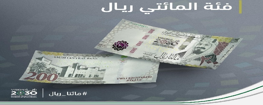 أعلن البنك المركزي السعودي، السبت «24 أبريل 2021»، عزمه طرح فئة المائتي ريال من العملة الورقية السعودية؛ بمناسبة مرور خمسة أعوام على إطلاق «رؤية المملكة 2030»، في عهد خادم الحرمين الشريفين الملك سلمان بن عبد العزيز آل سعود يحفظه الله، وذلك استناداً إلى المادة الرابعة من نظام النقد السعودي الصادر بالمرسوم الملكي رقم 6 بتاريخ 1379/07/01هـ.