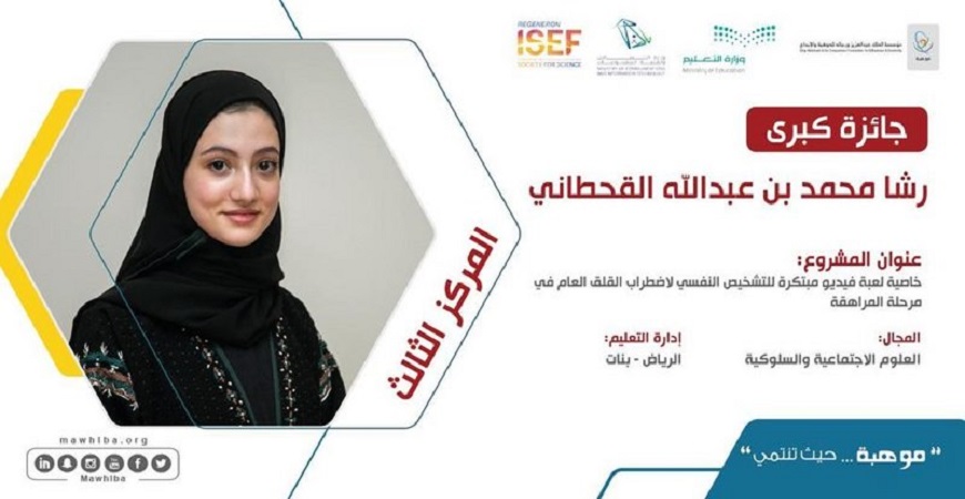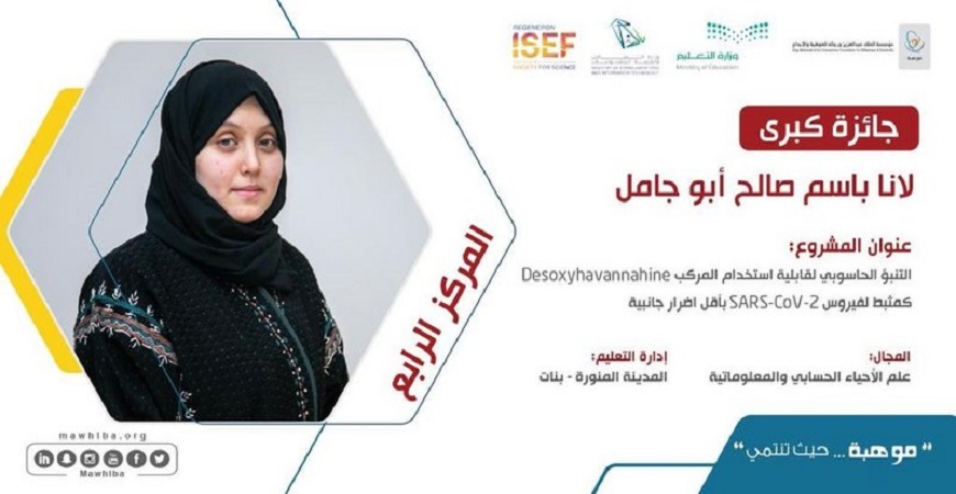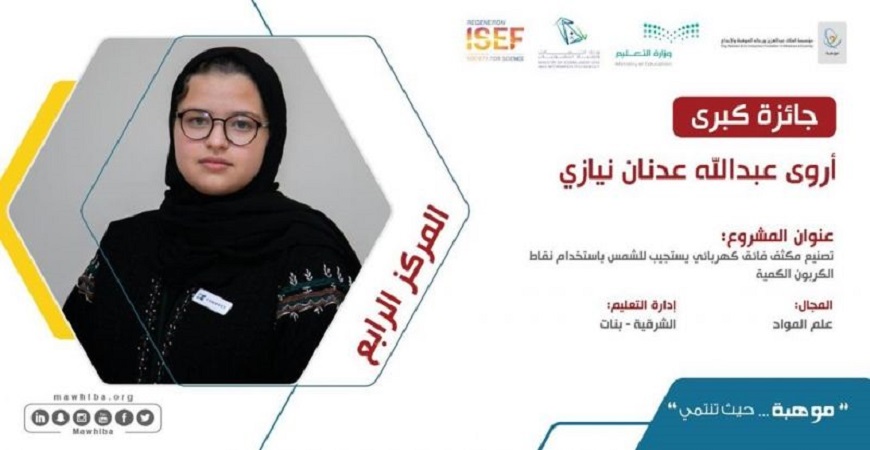 وحقق الجوائز الكبرى كل من: الطالب منصور المرزوقي بفوزه بالمركز الثاني في مجال الطاقة: المواد والتصميم المستدام عن مشروعه ” تصميم مكثف كهربائي فائق يشحن نفسه بوسيلة الضوء”، والطالبة رشا القحطاني جائزة المركز الثالث في مجال العلوم الاجتماعية والسلوكية عن مشروعها “خاصية لعبة فيديو مبتكرة للتشخيص النفسي لاضطراب القلق العام في مرحلة المراهقة”، والطالبة لانا أبو جامل وحققت المركز الرابع في مجال علم الأحياء الحسابي والمعلوماتي عن مشروعها ” التنبؤ الحاسوبي لقابلية استخدام مركب خاص كمثبط لفيروس SARS-CoV-2 بأقل أضرار جانبية”، والطالب عبدالله الشنقيطى بجائزة المركز الرابع في مجال الطاقة: المواد والتصميم المستدام عن مشروعه ” قطب كهربائي من النيكل كوبالتايت لإنتاج وقود الهيدروجين بسعر منخفض وطريقة متجددة”، والطالبة أروى نيازي بجائزة المركز الرابع في مجال علم المواد عن مشروعها تصنيع مكثف فائق يستجيب للشمس باستخدام نقاط الكربون الكمية.