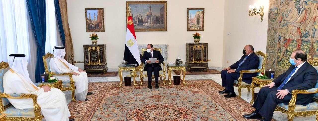 استقبل الرئيس المصري عبد الفتاح السيسي، الثلاثاء “25 مايو 2021″، الشيخ محمد بن عبد الرحمن آل ثاني، نائب رئيس الوزراء وزير خارجية دولة قطر، وذلك بحضور السيد سامح شكري وزير الخارجية والسيد عباس كامل رئيس المخابرات العامة، إلى جانب السيد عبد الله الخليفي رئيس جهاز أمن الدولة القطري.