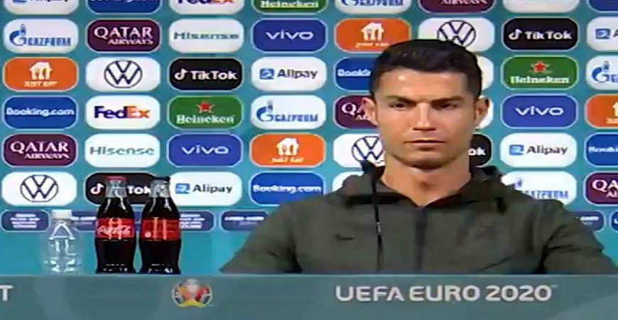 كريستيانو رونالدو يثير غضب كوكاكولا خلال لقاء صحفي على الهواء مباشرة حيث كانت أمامه زجاجتيّ كولا فأزاحهم ثم أخذ علبة ماء وقال "اشربوا الماء" في إشارة إلى ضرر تلك المشروبات.