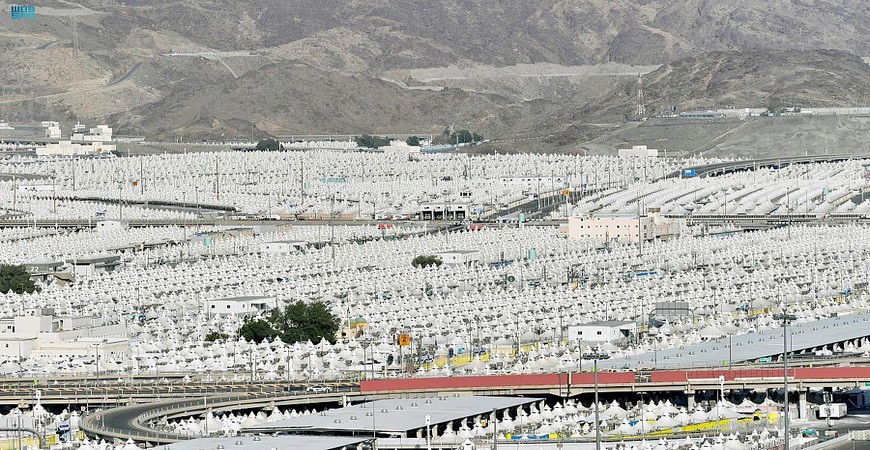 وتمتد الخيام على مساحة 2,500,000 متر مربع، وتستوعب نحو 2,600,000 حاج وحاجة ، وبهذا يصبح في مشعر منى أكبر مدينة خيام في العالم.