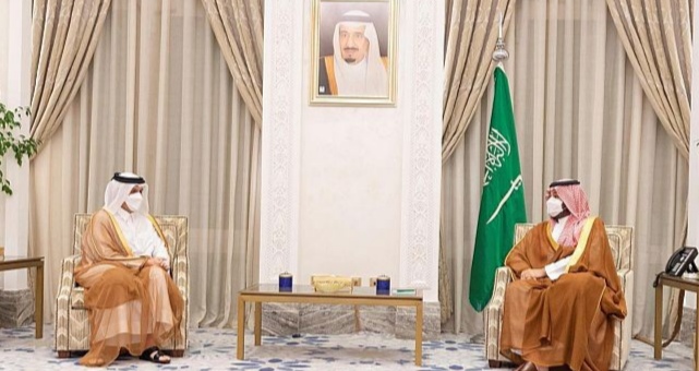 ولي العهد يبحث مع وزير خارجية قطر العلاقات الثنائية