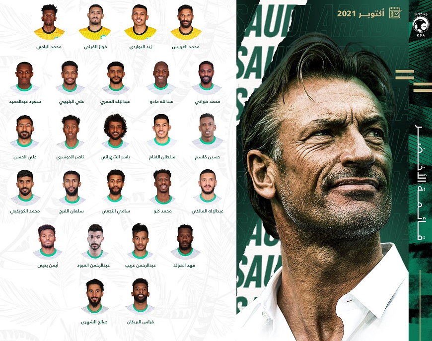 أعلن الفرنسي هيرفي رينارد المدير الفني للمنتخب السعودي، الثلاثاء «28 سبتمبر 2021»، قائمة اللاعبين المختارين لمباراتي اليابان والصين في التصفيات الآسيوية النهائية المؤهلة لمونديال 2021.