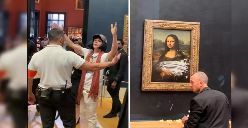 ألقى أحد زوار متحف اللوفر بالعاصمة الفرنسية باريس، قطعة كعكة على لوحة الموناليزا الشهيرة عالميا والمعروضة وراء زجاج واقي.