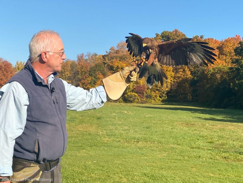 رودني ستوتس مع أغنيس، صقر هاريس الذي أطلق عليه اسم صديقه الراحل أغنيس نيكسون، الكاتب والمنتج التلفزيوني. (Courtesy of Rodney Stotts)
