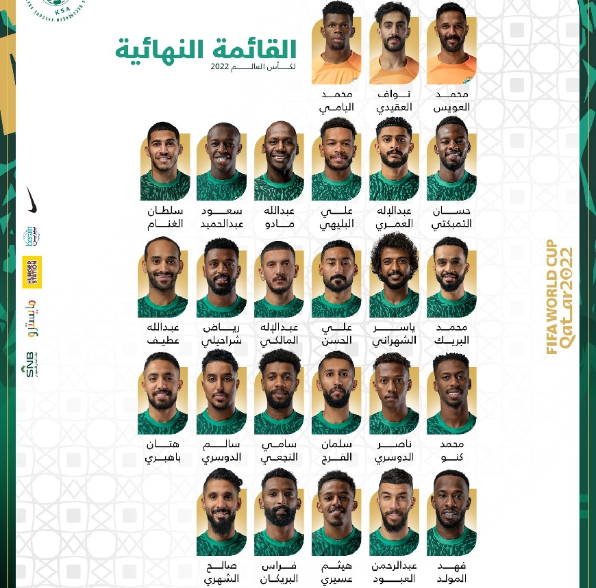 أعلن إيرفي رينار مدرب الأخضر السعودي، عن تشكيلة من 26 لاعبا لخوض منافسات كأس العالم لكرة القدم في قطر هذا الشهر.