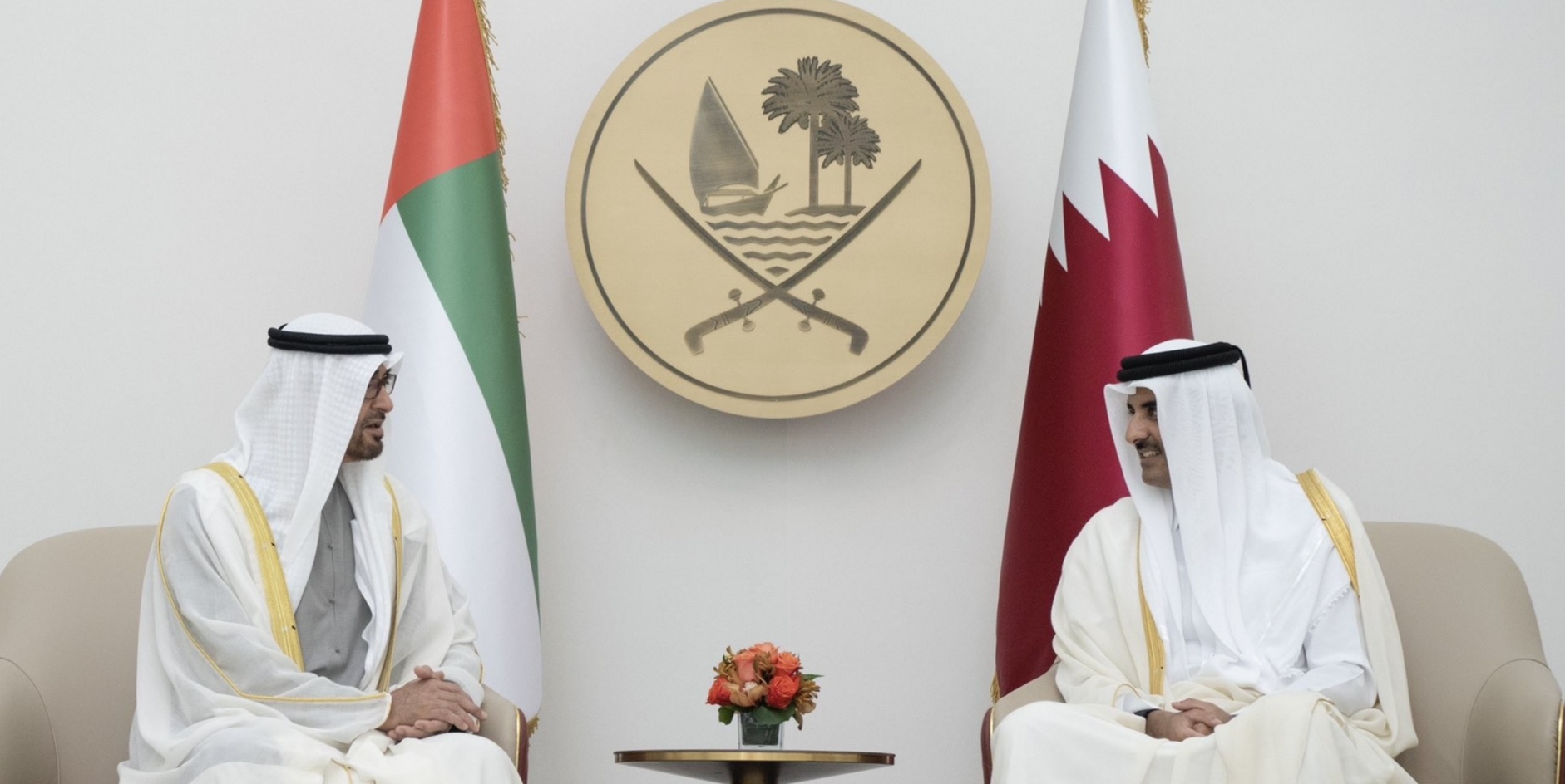 بعدها توجه صاحب السمو الشيخ محمد بن زايد آل نهيان وصاحب السمو الشيخ تميم بن حمد آل ثاني إلى المنصة الرئيسة حيث عزف السلام الوطني لكل من دولة الإمارات ودولة قطر..بعدها تفقد صاحب السمو الشيخ محمد بن زايد آل نهيان ثلة من حرس الشرف اصطفت تحية لسموه.