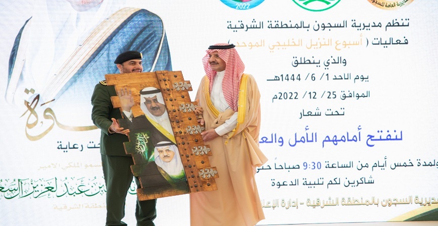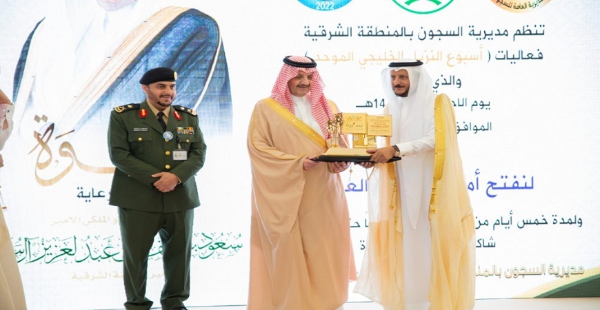 وجاء ذلك خلال رعاية الأمير سعود بن نايف، حفل افتتاح فعاليات أسبوع النزيل الخليجي الموحد تحت شعار «لنفتح أمامهم الأمل والعمل»، الذي تنظمه المديرية العامة للسجون بالمنطقة الشرقية في مجمع النخيل مول بالدمام، ويستمر أسبوع، حيثُ اطلع الأمير عود بن نايف، على المعرض المصاحب ومشاركات النزلاء مُبديًا اعجابه بتلك المشاركات التي تؤكد استفادة النزلاء من برامج التأهيل والتدريب التي تقامداخل السجون.