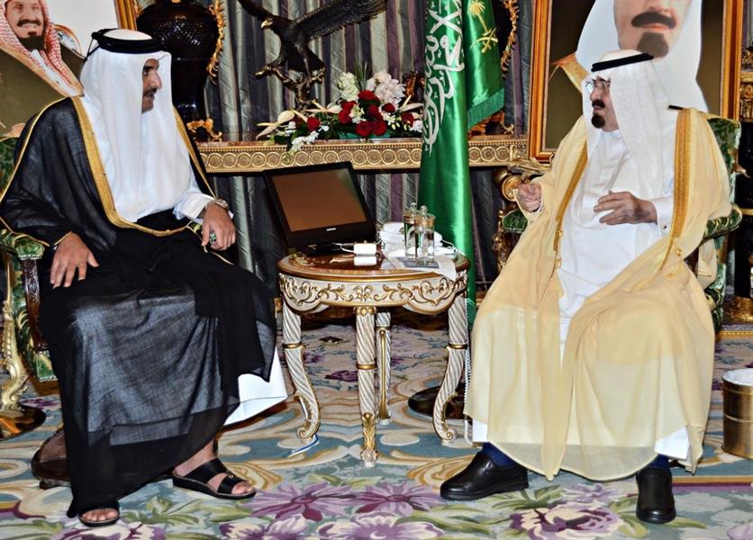 بالصور .. خادم الحرمين الشريفين يستقبل أمير قطر