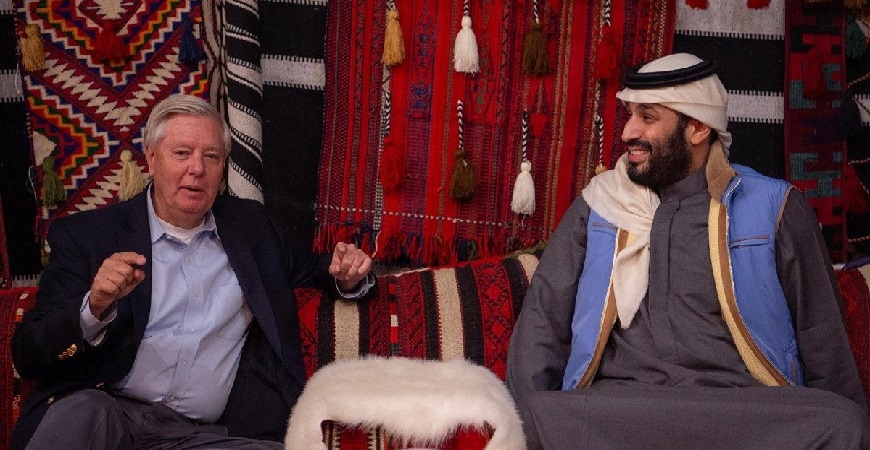 الصداقة بين البلدين، والأوضاع عالميًا حاضرة في اجتماع ولي العهد والسيناتور الأمريكي ليندسي غراهام، في المخيم الشتوي بالعُلا
