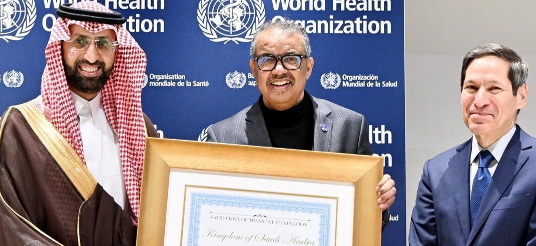 كرّمت منظمة الصحة العالمية، في مقرها الرئيس في مدينة جنيف السويسرية، الهيئة العامة للغذاء والدواء بمناسبة حصولها على شهادة الاعتراف بخلو المنتجات الغذائية في المملكة من الدهون المتحولة الاصطناعية، وذلك ضمن أول خمس دول في العالم إلى جانب (مملكة الدنمارك، جمهورية ليتوانيا، جمهورية بولندا، مملكة تايلند).