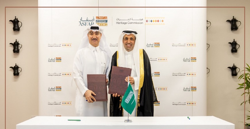 وقّعت هيئة التراث، مذكرة تفاهم مع الشركة السعودية للاستثمار السياحي «أسفار» المملوكة لصندوق الاستثمارات العامة، وذلك بهدف تفعيل الأصول التراثية، وتعزيز التعاون بين الجهتين لتطوير تجربة الزوار في الوجهات التراثية الواعدة بالمملكة العربية السعودية.