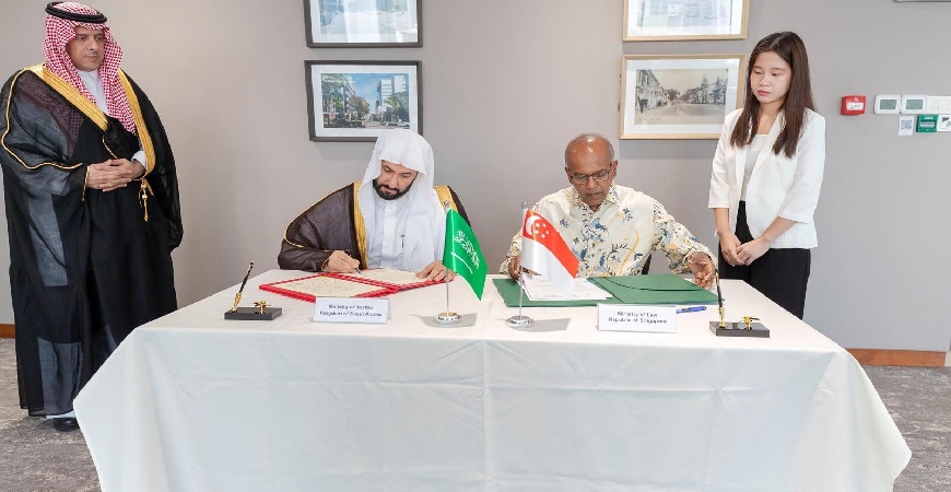 وزير العدل يوقع مذكرة تفاهم مع وزير القانون السنغافوري لتعزيز الحلول البديلة للنزاعات الدولية