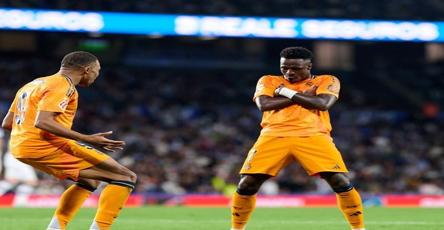 دكّ النجم البرازيلس فينيسيوس جونيور، ونظيره الفرنسي وكيليان مبابي، الشباك في الشوط الثاني من ركلتي جزاء، ليقودا حامل اللقب نادي ريال مدريد، لفوز بشق الأنفس على مضيفه ريال سوسيداد، بثنائية نظيفة، ضمن الجولة الخامسة من دوري الدرجة الأولى الإسباني «الليغا».
