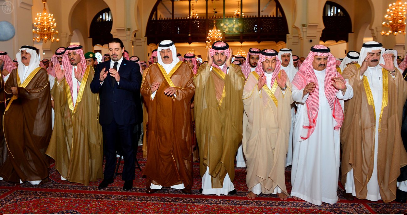 وقد أدى الصلاة مع سموهما صاحب السمو الملكي الأمير خالد بن سعد بن عبدالعزيز , وصاحب السمو الأمير سعود بن عبدالله بن ثنيان رئيس الهيئة الملكية للجبيل وينبع ,وصاحب السمو الملكي الأمير عبدالله بن متعب بن عبدالله , وصاحب السمو الملكي الأمير سعد بن متعب بن عبدالله بن عبدالعزيز ,وصاحب السمو الملكي الأمير تركي بن متعب بن عبدالله , ورئيس الوزراء اللبناني الأسبق سعد الحريري .