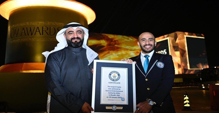 منحت موسوعة غينيس للأرقام القياسية، الهيئة العامة للترفيه (GEA) وموسم الرياض ومهرجان جوي 2025 شهادة تحقيق أكبر درع تكريمي في العالم، بارتفاع بلغ 15.13 مترًا، في إنجاز جديد يضاف إلى سجل الهيئة.