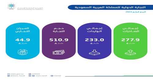 وعلى صعيد الواردات، فقد ارتفعت في الربع الرابع 2024م بنسبة 15.5%، وعند النظر للميزان التجاري السلعي، فقد انخفض الفائض بنسبة 52.4% عن الربع الرابع لعام 2023م.