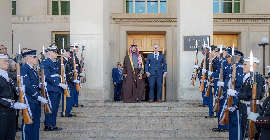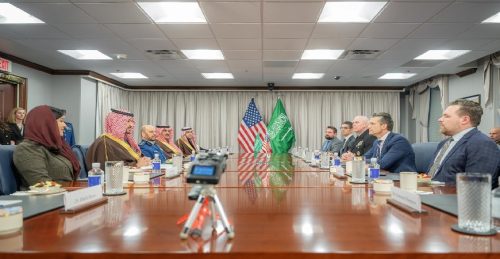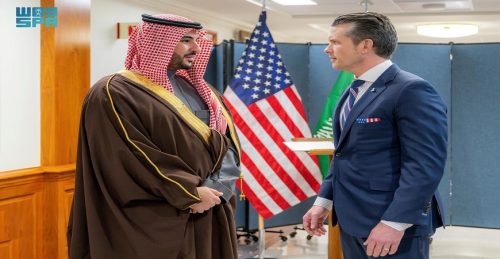 استقبل وزير الدفاع الأمريكي بيت هيغسيث، في مقر وزارة الدفاع بالعاصمة الأمريكية واشنطن، وزير الدفاع الأمير خالد بن سلمان بن عبدالعزيز.