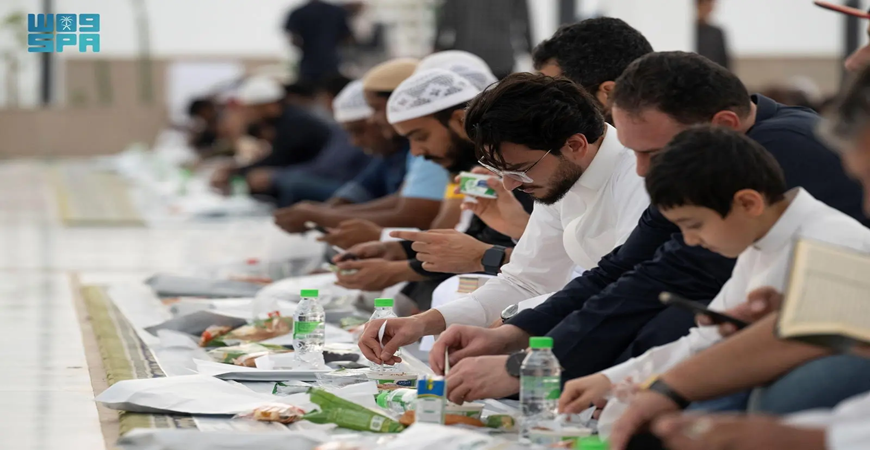 ورصدت عدسة “واس” مشهد موائد الإفطار قبيل مغرب اليوم من ساحات مسجد القبلتين ويتم ترتيب وتنظيم موائد إفطار المصلين خلال شهر رمضان المبارك بمبادرة من هيئة تطوير المدينة المنورة الجهة المشرفة على المكان، والجهات الخيرية، وأهالي المدينة المنورة، تتضمن تقديم وجبات مغلفة، تحوي أغذية تقليدية مثل التمر، والماء، والزبادي، والخبز، يجتمع خلالها آلاف الزائرين في ساحات المسجد الذي يعدّ تحفة معمارية، تجسّد جهود العناية بالمساجد والمعالم التاريخية في المدينة المنورة.