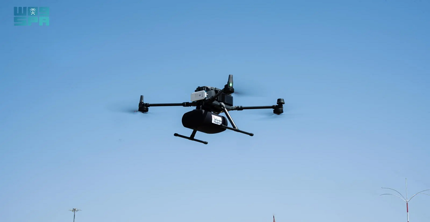 ودخلت الطائرات بدون طيار (الدرونز) لأول مرة ضمن منظومة الإمداد الطبي خلال موسم الحج، لتُحدث تحولًا في سرعة الاستجابة ودقة الإمداد، بهدف نقل البنود الطبية العاجلة ومن بينها الأدوية، والمستلزمات الطبية من مراكز الشركة الوطنية للشراء الموحد للأدوية والأجهزة والمستلزمات الطبية (نوبكو) إلى المنشآت الصحية في المناطق الأكثر ازدحامًا، بما يقلّص متوسط زمن التوصيل من ساعة إلى نحو (5) دقائق فقط، مستهدفةً (6) مرافق طبية رئيسية منها (3) في مشعر عرفات، و(3) في مشعر منى، لتحقيق أسرع استجابة صحية حفاظًا على سلامة ضيوف الرحمن.