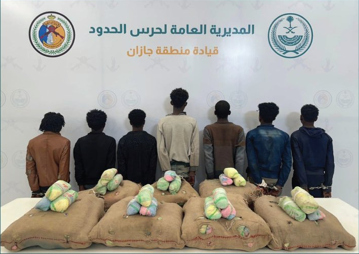 قبضت الدوريات البرية لحرس الحدود في قطاع الدائر بمنطقة جازان على 7 مخالفين لنظام أمن الحدود من الجنسية الإثيوبية، لتهريبهم 140 كيلوجرامًا من نبات القات المخدر.