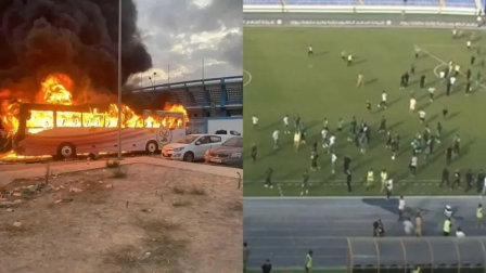 ذخيرة حية وإحراق حافلة وإصابة حكم برتغالي في ديربي بالدوري الليبي