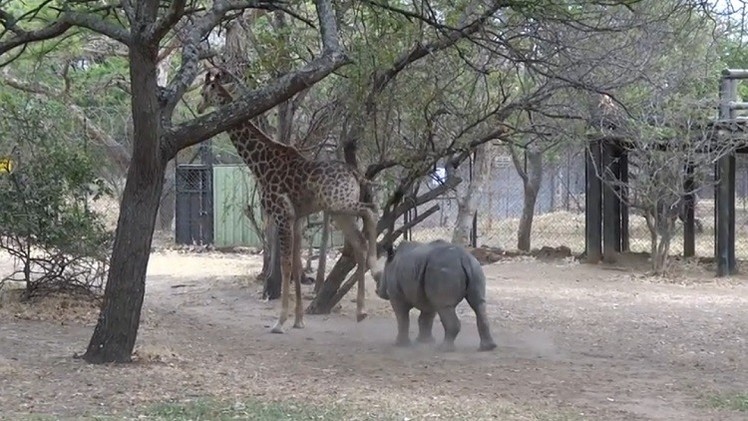 ونقلت صحيفة “مترو” البريطانية عن أحد العاملين بمركز إعادة التأهيل للحياة البرية بجنوب أفريقيا حيث تم تصوير الفيديو إن وحيد القرن والزرافة يعدان أصدقاء مقربين ولكن ربما حدث خلاف ما بينهما.