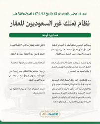 فيما يمنع التملك في مكة والمدينة لغير السعوديين إلا بشروط خاصة للمسلمين أو وفق تنظيمات مُحدَدَّة.