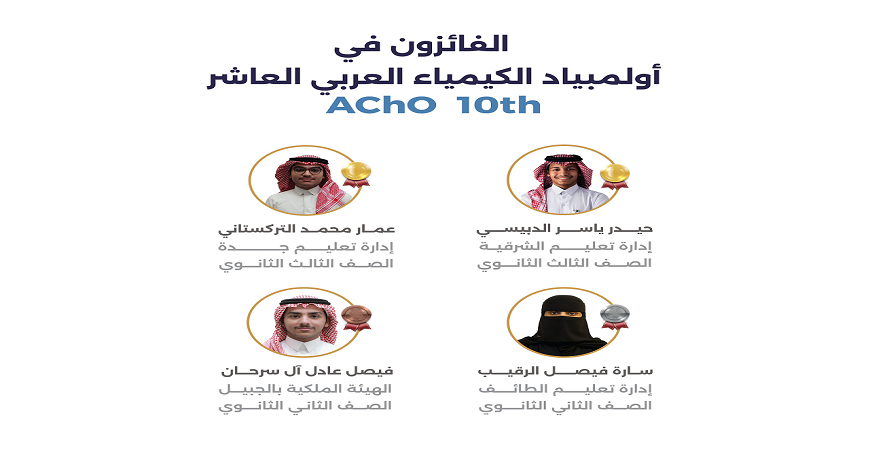 وحقق حيدر ياسر الدبيسي من تعليم الشرقية، وزميله عمار محمد التركستاني من تعليم جدة، ميداليتين ذهبيتين، ونالت سارة فيصل الرقيب من تعليم الطائف ميدالية فضية، وحصل فيصل عادل آل سرحان من تعليم الهيئة الملكية بالجبيل على ميدالية برونزية.