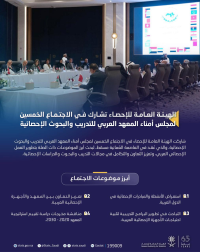 ورأس وفد الهيئة رئيس الهيئة العامة للإحصاء فهد بن عبد الله الدوسري، حيث ناقش الاجتماع عددًا من البنود الرئيسة المدرجة على جدول الأعمال، من أبرزها: تقرير المدير العام للمعهد لعام 2025م، وبرنامج عمل وخطة المعهد للعامين 2026 – 2027م، ومشروع موازنة المعهد لعام 2026م، إلى جانب عرض مخرجات دراسة تقييم استراتيجية 2020 – 2030م، إضافة إلى استعراض الأنشطة والمبادرات الإحصائية في الدول العربية. كما تناول الاجتماع، بحث آليات تعزيز التعاون بين المعهد والاجهزة الإحصائية العربية، ومناقشة سبل تطوير البرامج التدريبية التي يقدمها المعهد لتلبية احتياجات الأجهزة الإحصائية العربية.