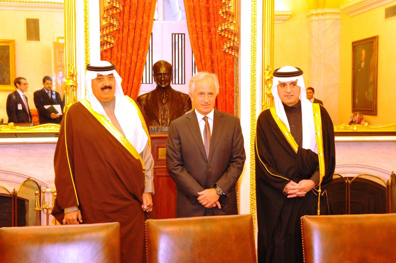 وكان في استقباله بمقر المجلس السيناتور روبيرت كروركر الذي رحب بزيارة سموه للولايات المتحدة الأمريكية ولمجلس الشيوخ .